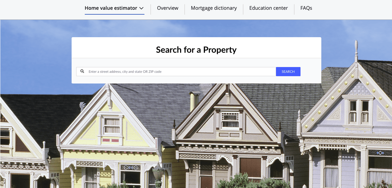 Chase’s home value estimator is powered by robust data collected from over 10,000 government and proprietary sources. Although Chase doesn’t ask for user-submitted information upfront, a user can adjust the number of beds, baths, total rooms, and total square footage boxes to either represent recent upgrades or forecast the value of a remodeling project. The tool also automatically pulls in a module displaying recent nearby sales information.