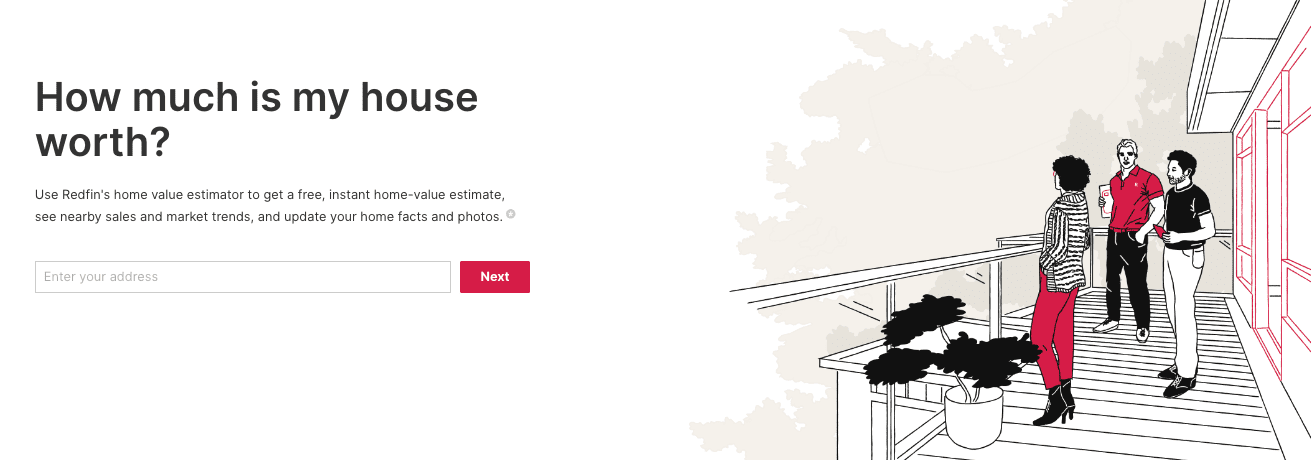 Launched in 2006, Zillow is the original home value estimator tool. When you enter the home address and click “Get started,” the software generates an estimate and lists the square footage, number of bedrooms, and number of bathrooms for the property.