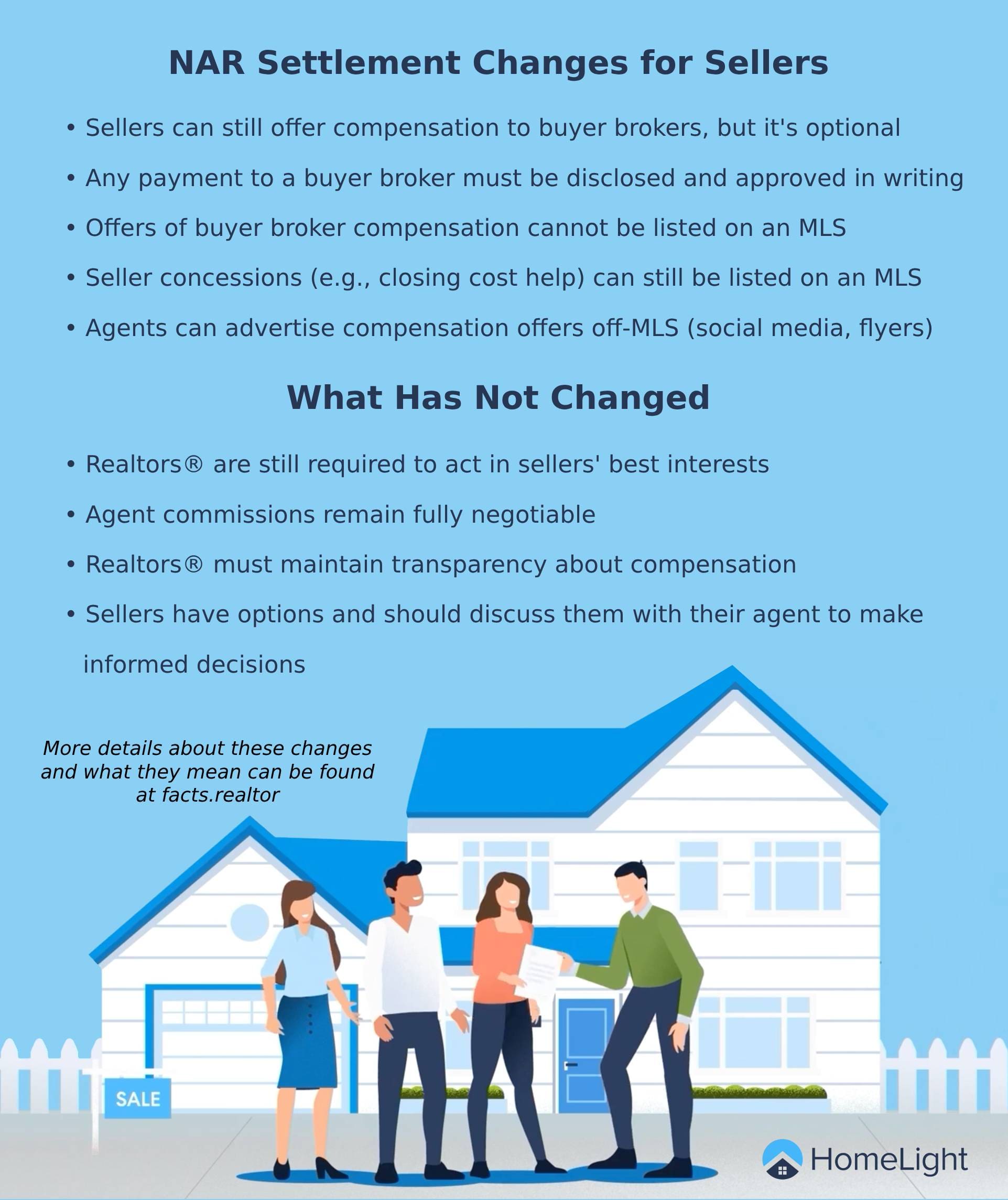 - Offers of compensation can no longer be on the MLS: In the past, agents would include compensation offers on the multiple listing service (MLS), the local marketplace where agents share information about properties for sale. Such offers must now be communicated off-MLS.