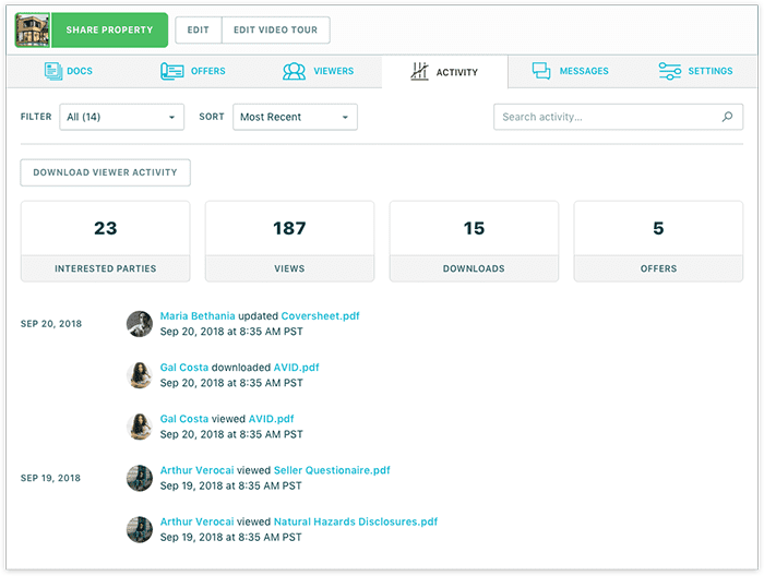 - Monitor your efforts with reports on buyer interest, where you’ll see who has opened and read which documents and when, allowing you to identify what’s working, what needs improvement, and even anticipate upcoming offers