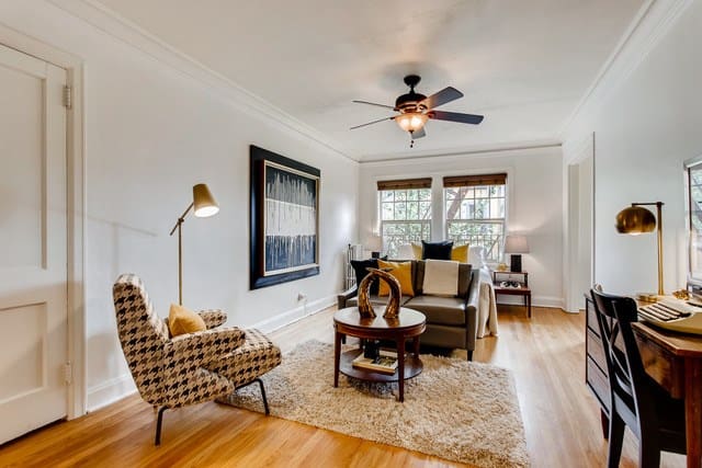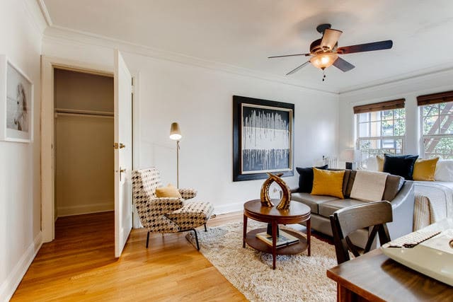 The goal of staging an apartment is to show buyers how they could comfortably live in a space. That can be a challenge in smaller units or open concept apartments where functional areas like living and dining rooms aren’t designated. Use staging to create those spaces with rugs, furniture, and accents.