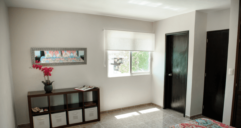For bedrooms, Crouse points out that using an inside mount will leave a little gap where light can come in. If you want full blackout, choose an outside mount to eliminate that ambient light.