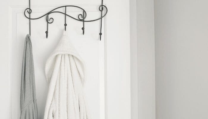 Use the hook on your bathroom door (or add a cheap one) for displaying the robe in a spa-like fashion.