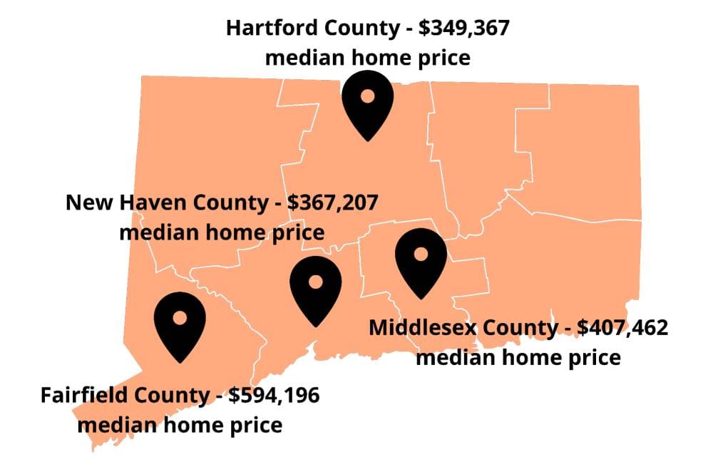 While the median price of a home in Connecticut is $432,611, housing prices can vary greatly, and those seeking to buy in some of the more sought-after areas might find themselves paying well over $1 million for their dream home. And with so many options, determining which county is best, what you can afford, and how to go about the process can seem overwhelming.