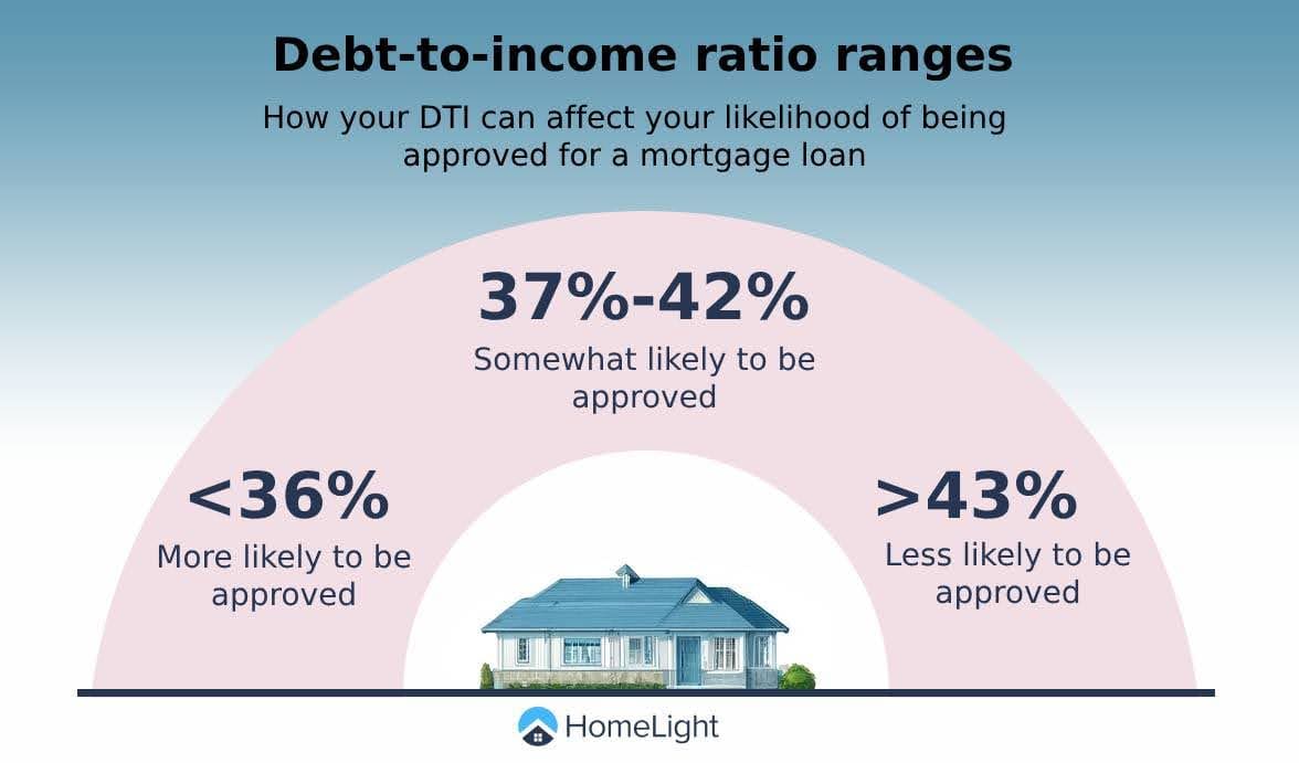 - Loan amount: A high DTI could limit how much you’re approved to borrow, affecting your home price range.