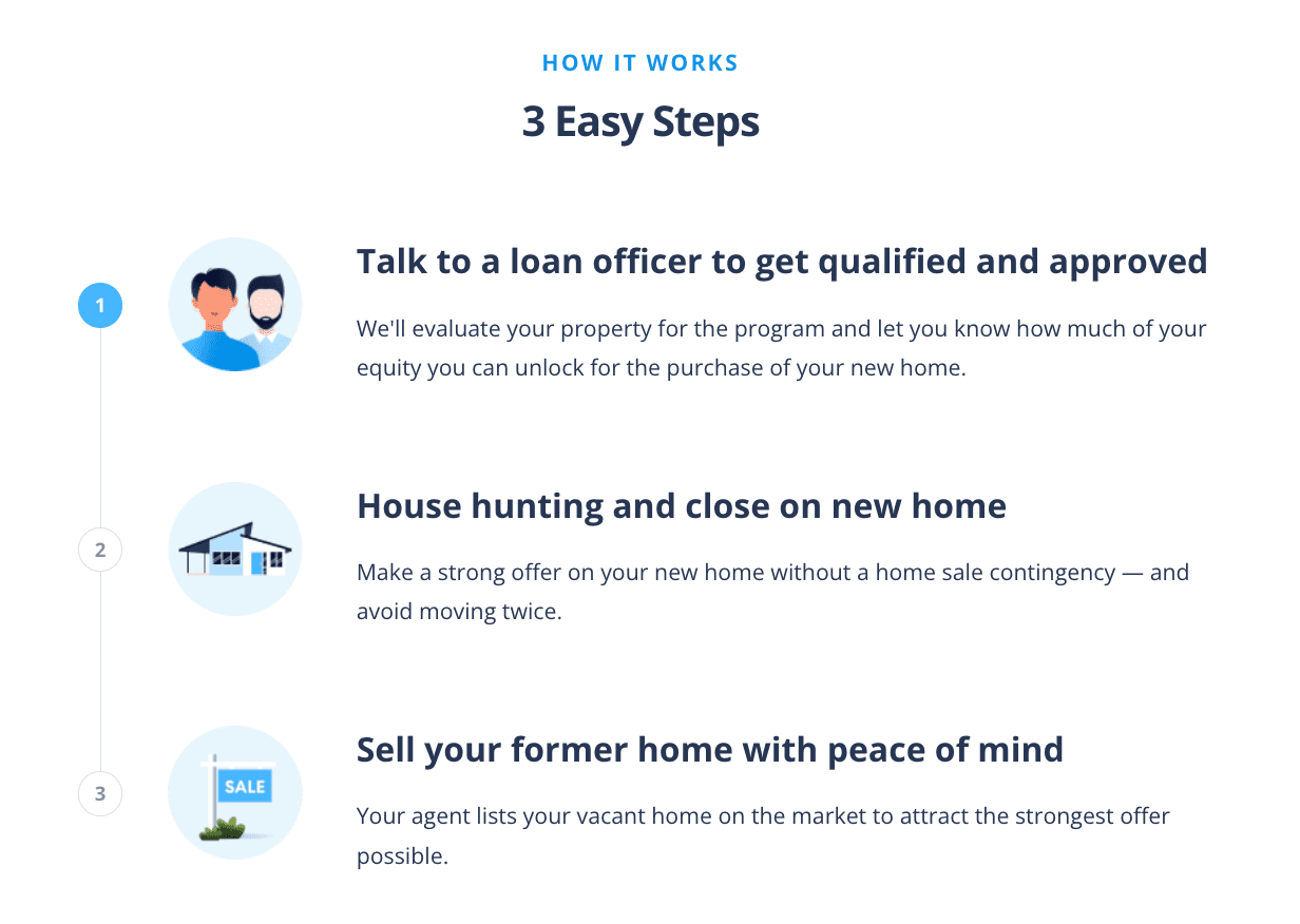 This buy-sell conundrum can be solved with a modern Buy Before You Sell program that allows you to use the equity from your current property to make a stronger, more competitive offer on the home you want.