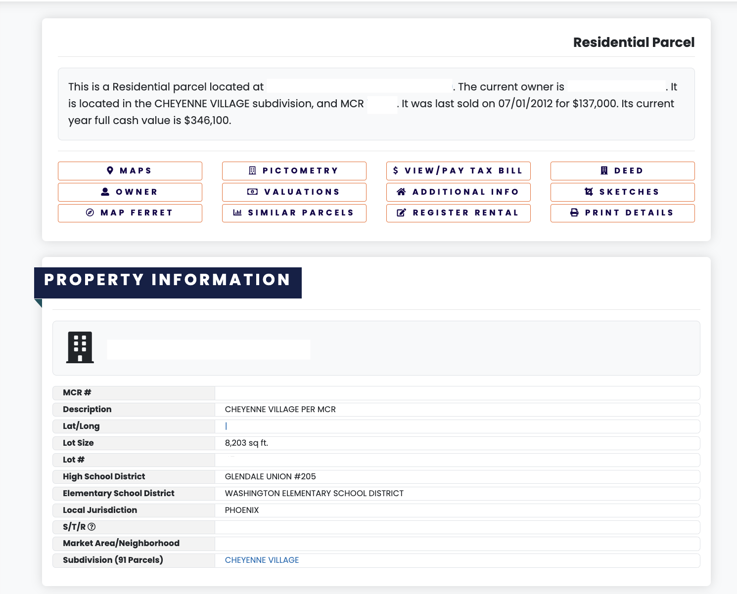 Meanwhile, some counties have gone digital and make it easy to look up property records online. For example, the Maricopa County Assessor’s Office website allows access to multiple reports without visiting other government agency sites. Simply enter the property address or parcel number: