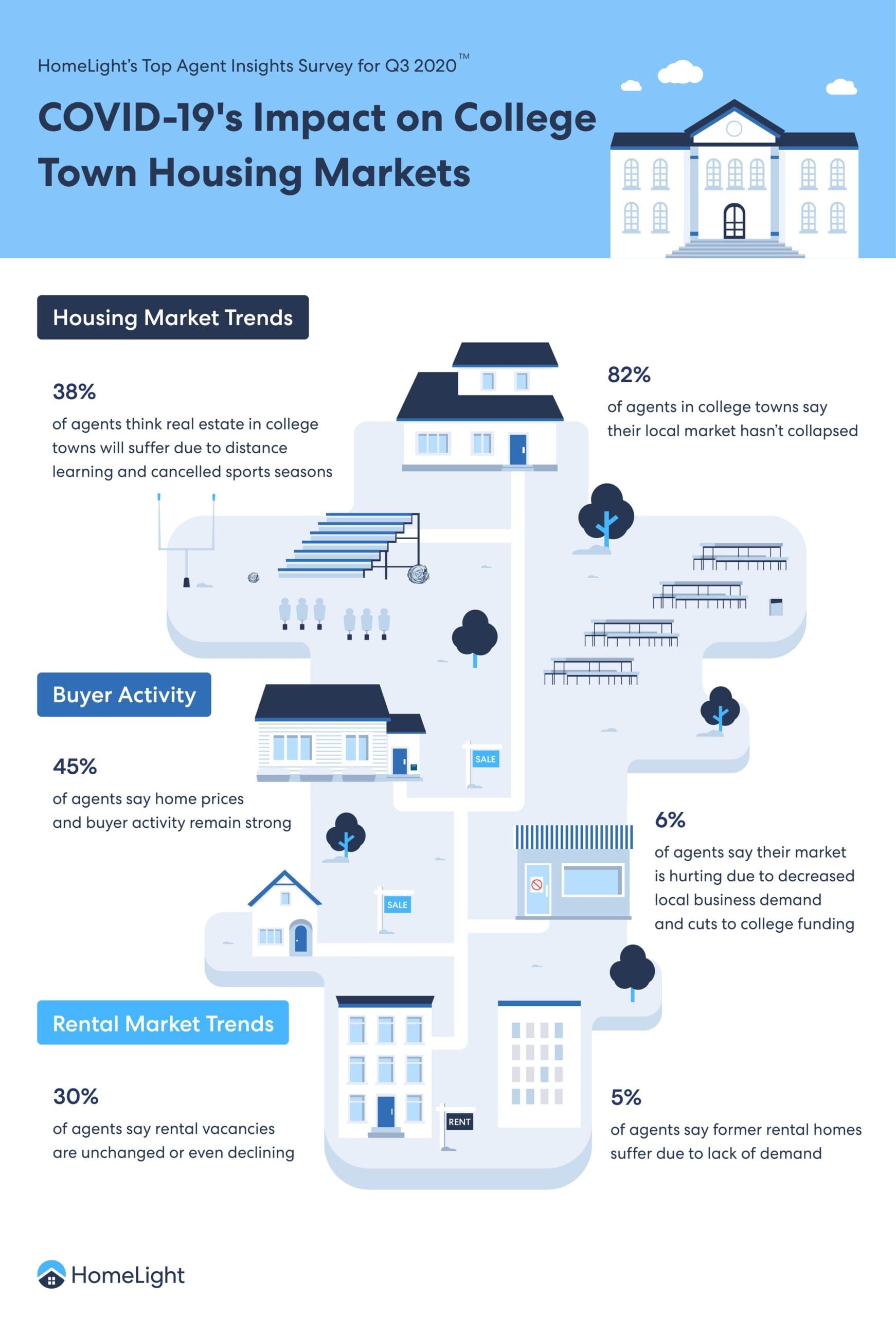 Before the coronavirus hit, the percentage of agents characterizing their market as favoring sellers was already trending smaller as the year went on. In the first quarter of 2019, over 58% of agents said the market favored sellers. By the last quarter of 2019, that number was down to 48%. However, just before the virus hit, a poll of agents in February 2020 showed a whopping 77% of them classified the market as a seller’s market.
