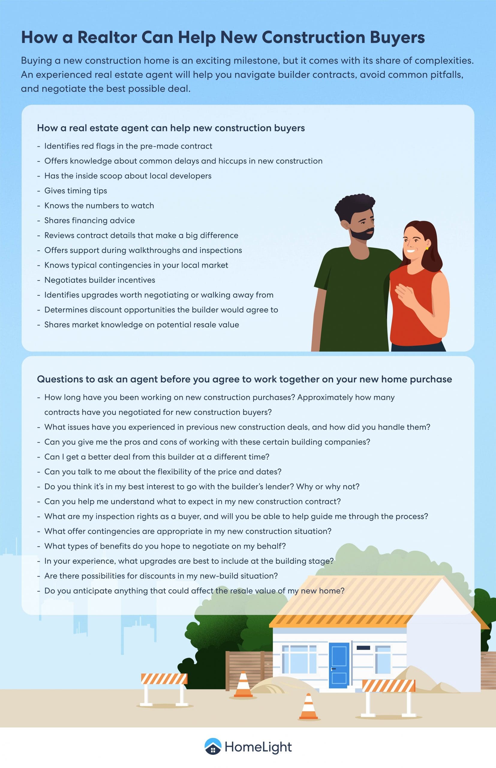 Buying a new home is a big deal. You deserve an agent who’s going to advocate for you every step of the way. You may want to consider interviewing a HomeLight real estate agent who has proven experience in the new construction sector.
