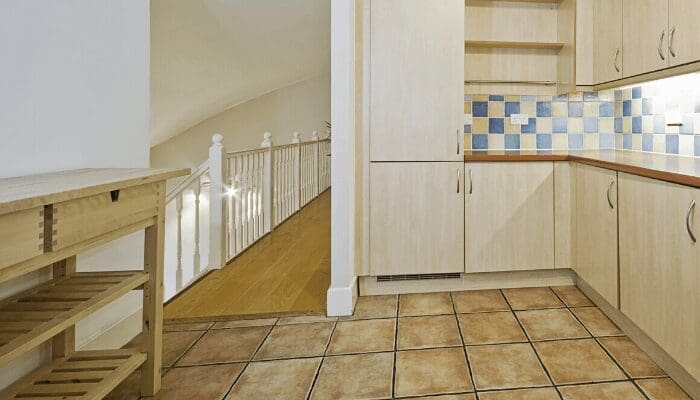 - Entryway stairs that give you a choice (up or down) as soon as you open the door