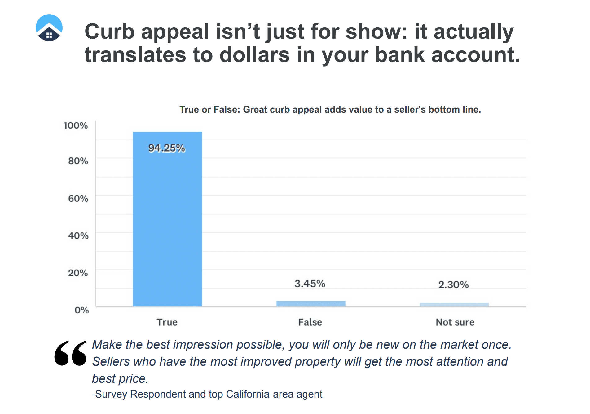 A whopping 94% of surveyed HomeLight agents say that great curb appeal has a major impact on your home’s value.