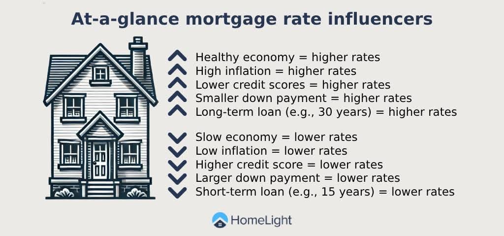 Let’s take a quick look at the mix of economic and personal factors that influence mortgage rates on a home loan: