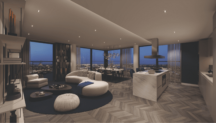 Many penthouses feature floor-to-ceiling windows designed to flood the space with natural light and allow you to enjoy the view from the comfort of your couch.