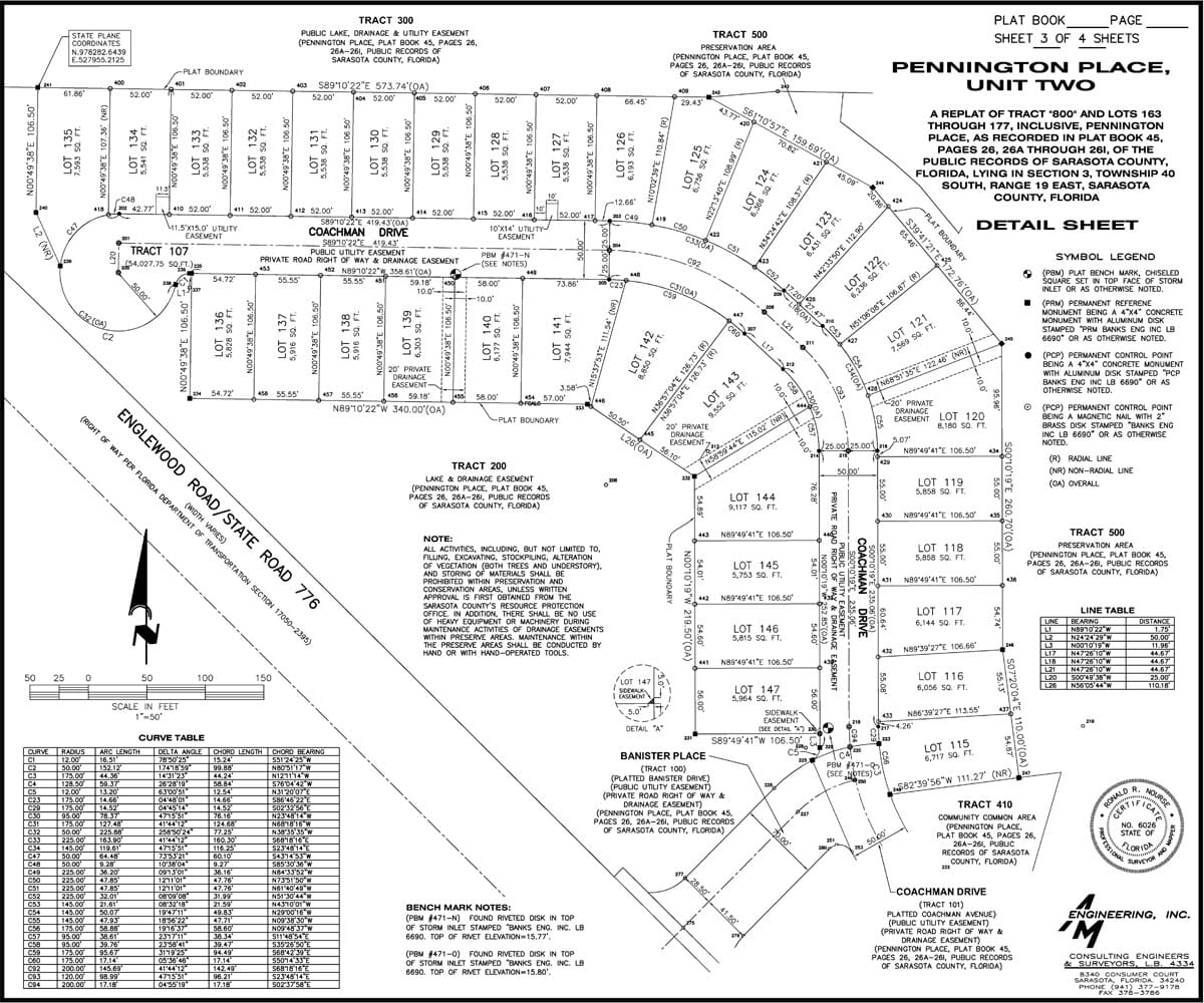 Sometimes, notes will accompany a plat map. The notes section can identify details like who is permitted to use certain tracts, who is responsible for maintaining public spaces, if there are any reserved areas for future development, and the locations of any protected trees or wetlands.
