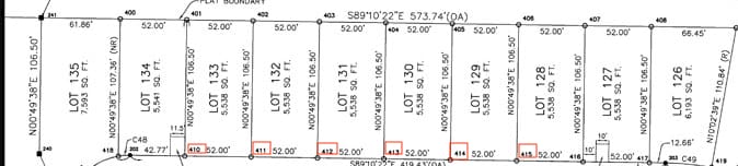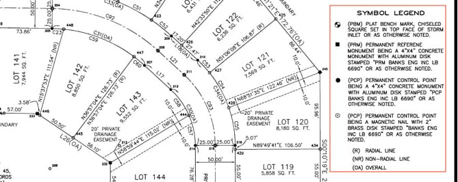 Keep in mind, all the plots — or each separate property unit — are represented by the individual square- or rectangle-shaped boxes on the map. Symbols and drawings will vary from one plat map to another, so always reference the legend.