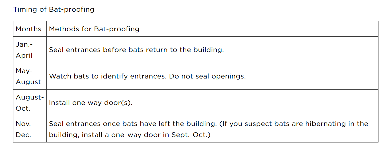 If you discover your bat infestation in the months of May to August, you’re going to have to wait until summer is over to have your professional exclusion done, which means you’ll need to wait on selling your house, too.
