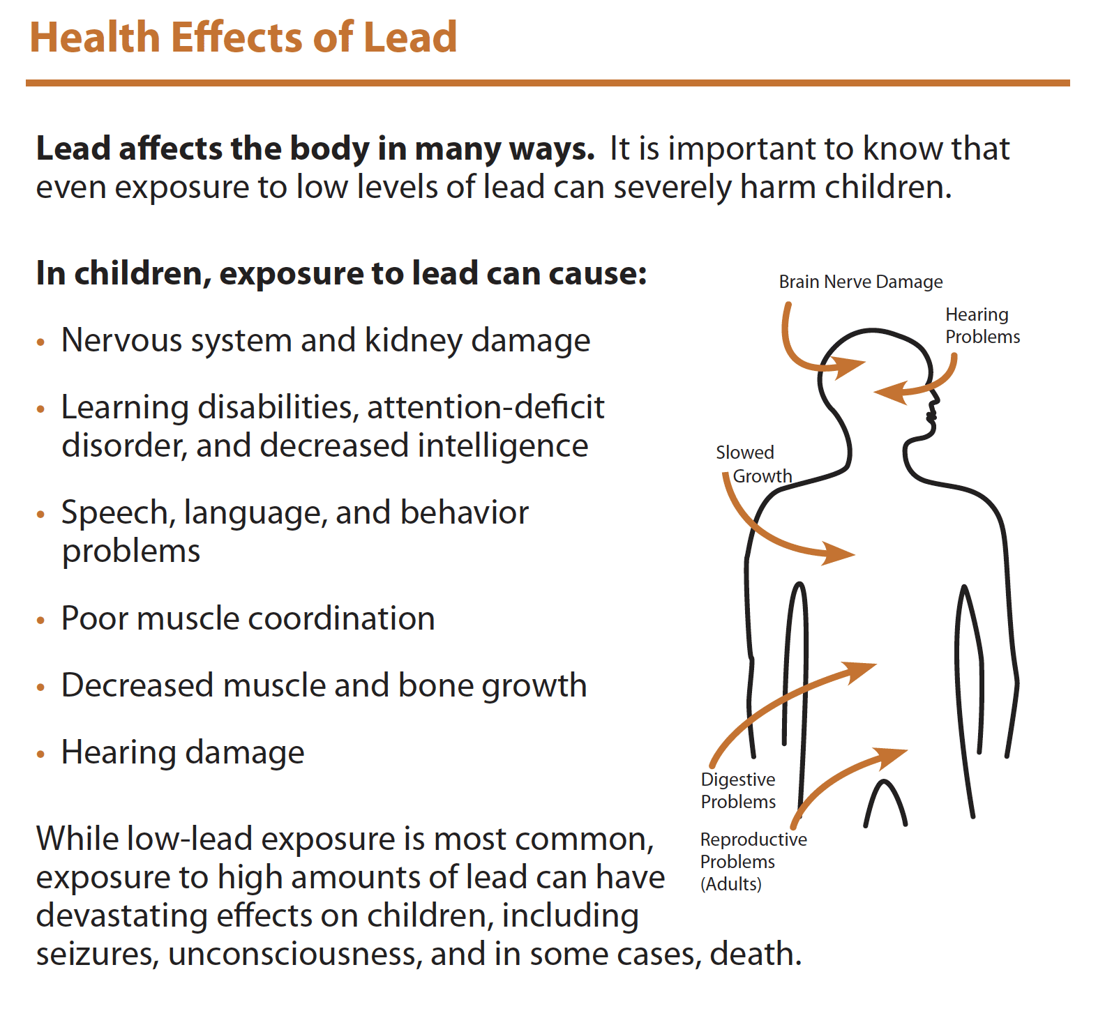 Lead poisoning can be especially dangerous for children under the age of six, as it can cause brain damage or damage to other vital organs, including the nervous system.