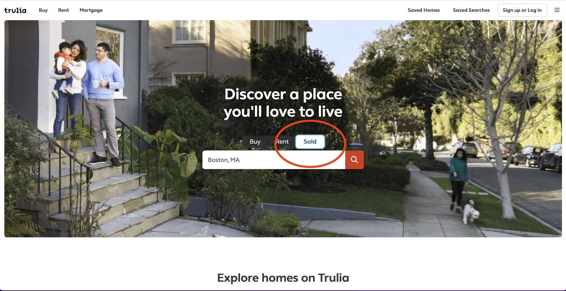 On the homepage of Trulia.com, click the “Sold” button and enter the name of your city.