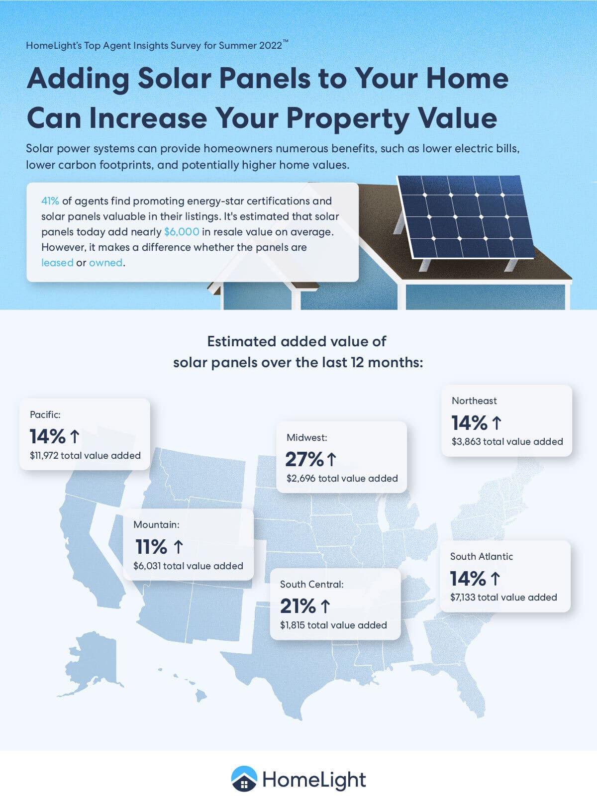If you’re selling a home with a solar system, or want to purchase an energy-efficient home, HomeLight’s Agent Match platform can connect you with a top-performing real estate agent in your market who has experience with solar-equipped homes.