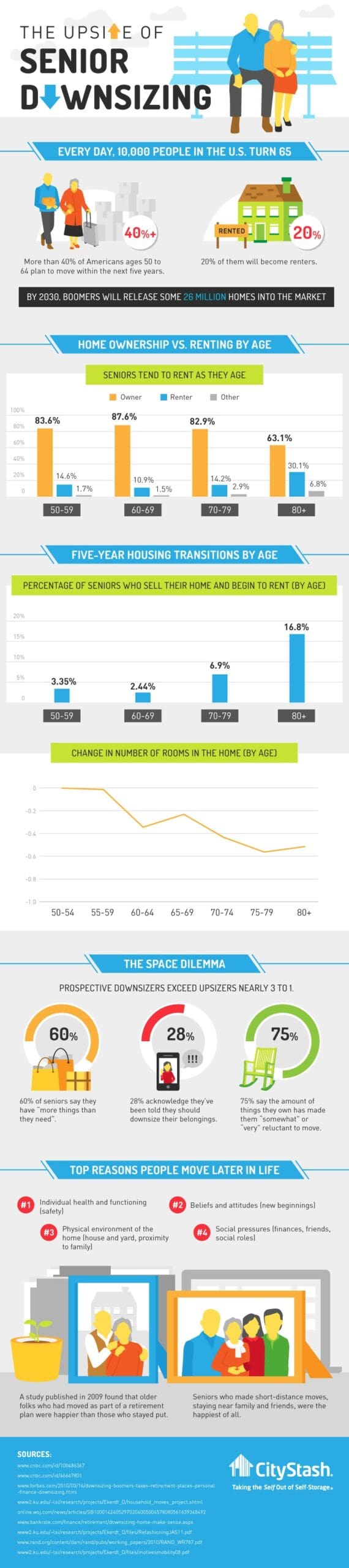 As seniors approach their 80s, they are 5 times more likely to sell their home and rent a place than they were in their 50s. Meanwhile, the spaces they occupy trend smaller in the years following retirement.