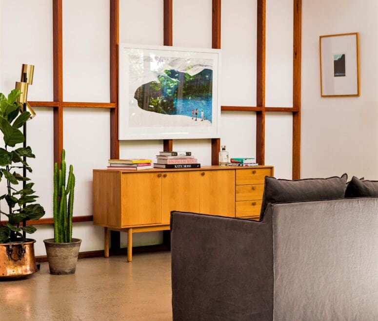 You create these “vignettes” and functional space by arranging the furniture around a focal point. You’ll want white or cream walls, neutral furniture, and pops of color with flowers, art, or throw pillows. The home should feel cohesive and consistent.