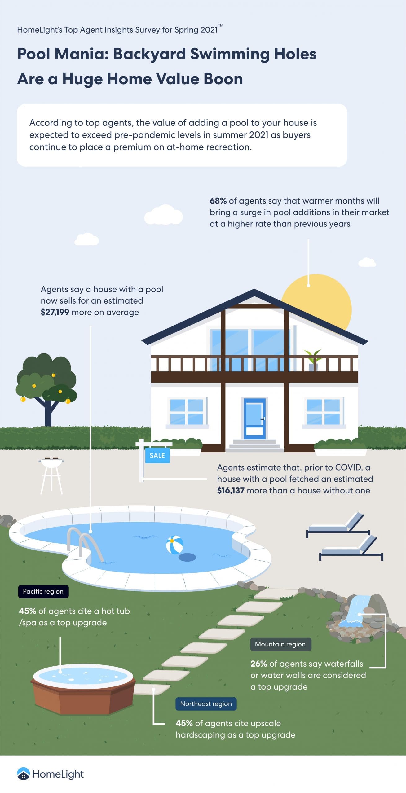 If you’re interested in putting in a swimming pool, and there’s a possibility that you may sell your home down the road, it’s a good idea to chat with a real estate agent before starting the process. He or she can identify the latest trends and give you an idea of what buyers are looking for in a pool, so you can choose the features and designs that will make the outdoor space a strong selling point.