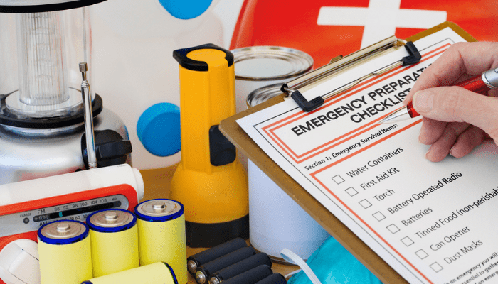 - Maintain a survival kit in your home with basic supplies including water, non-perishable food, flashlights, first-aid kit, battery-powered or hand-crank radio, and copies of important personal documents.