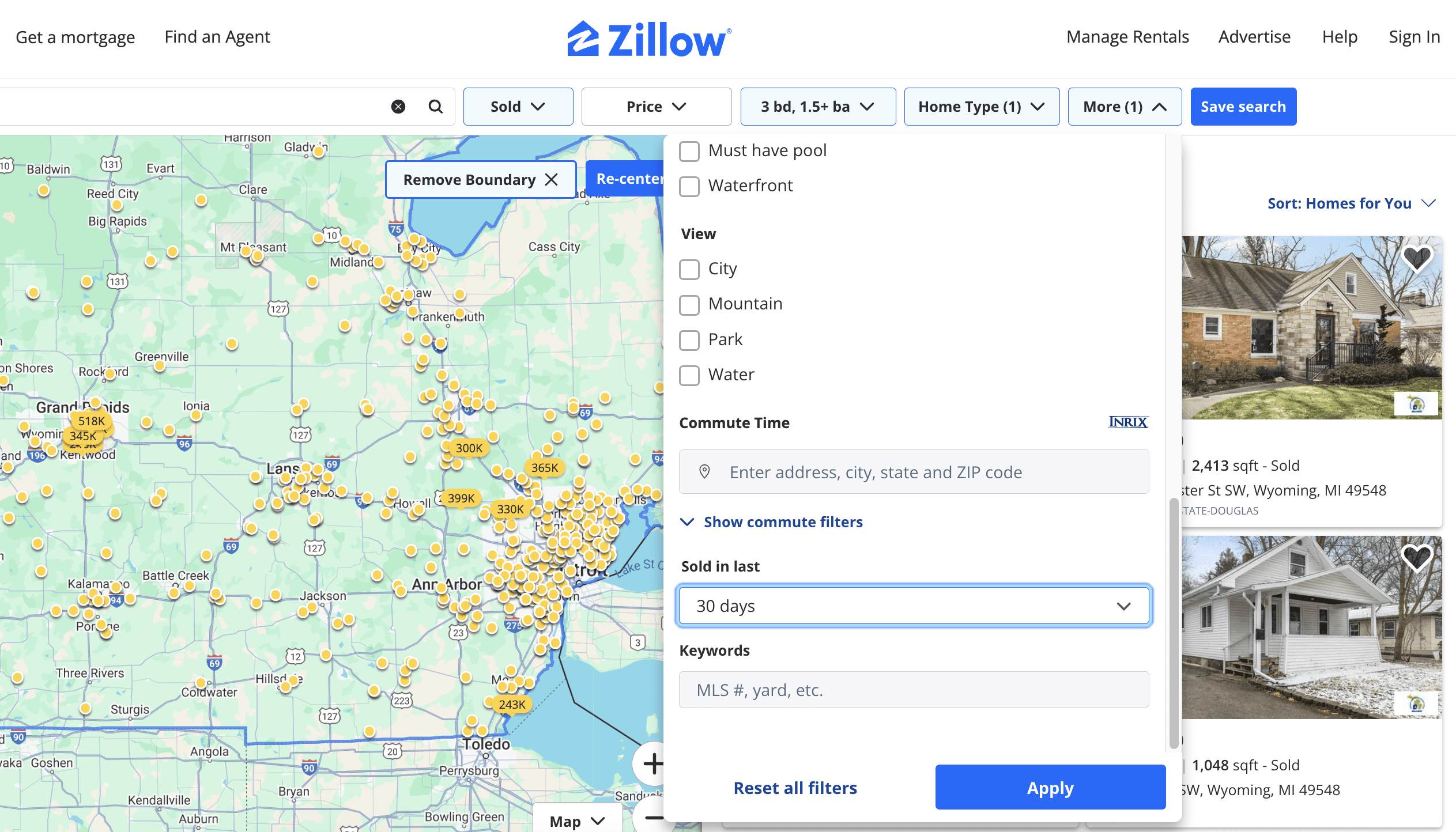 You’ll want to filter your searches to the area very near your house (within blocks if possible) and with similar characteristics. If you’re not finding any comps, expand your search map.