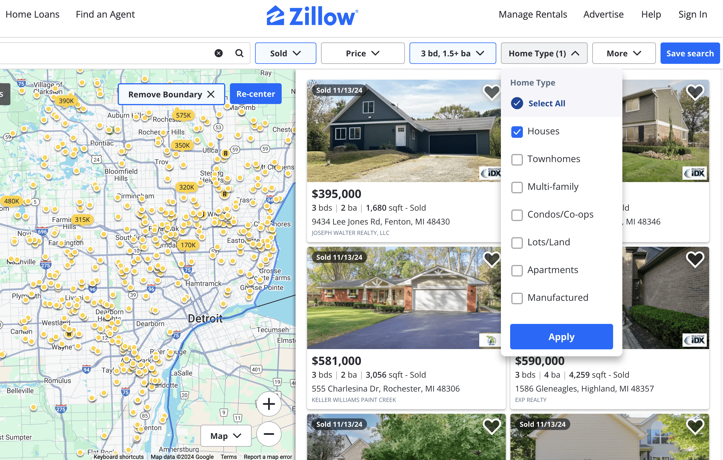 As an example, let’s take a look at how to filter your search for comps on Zillow.