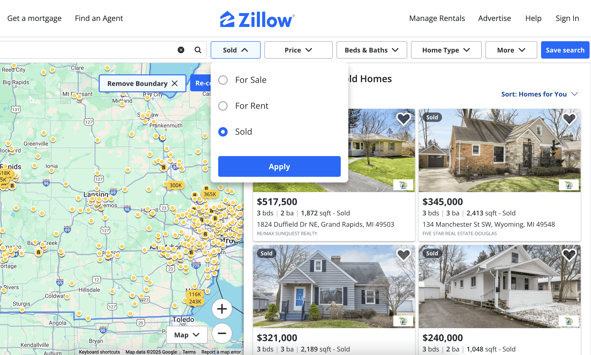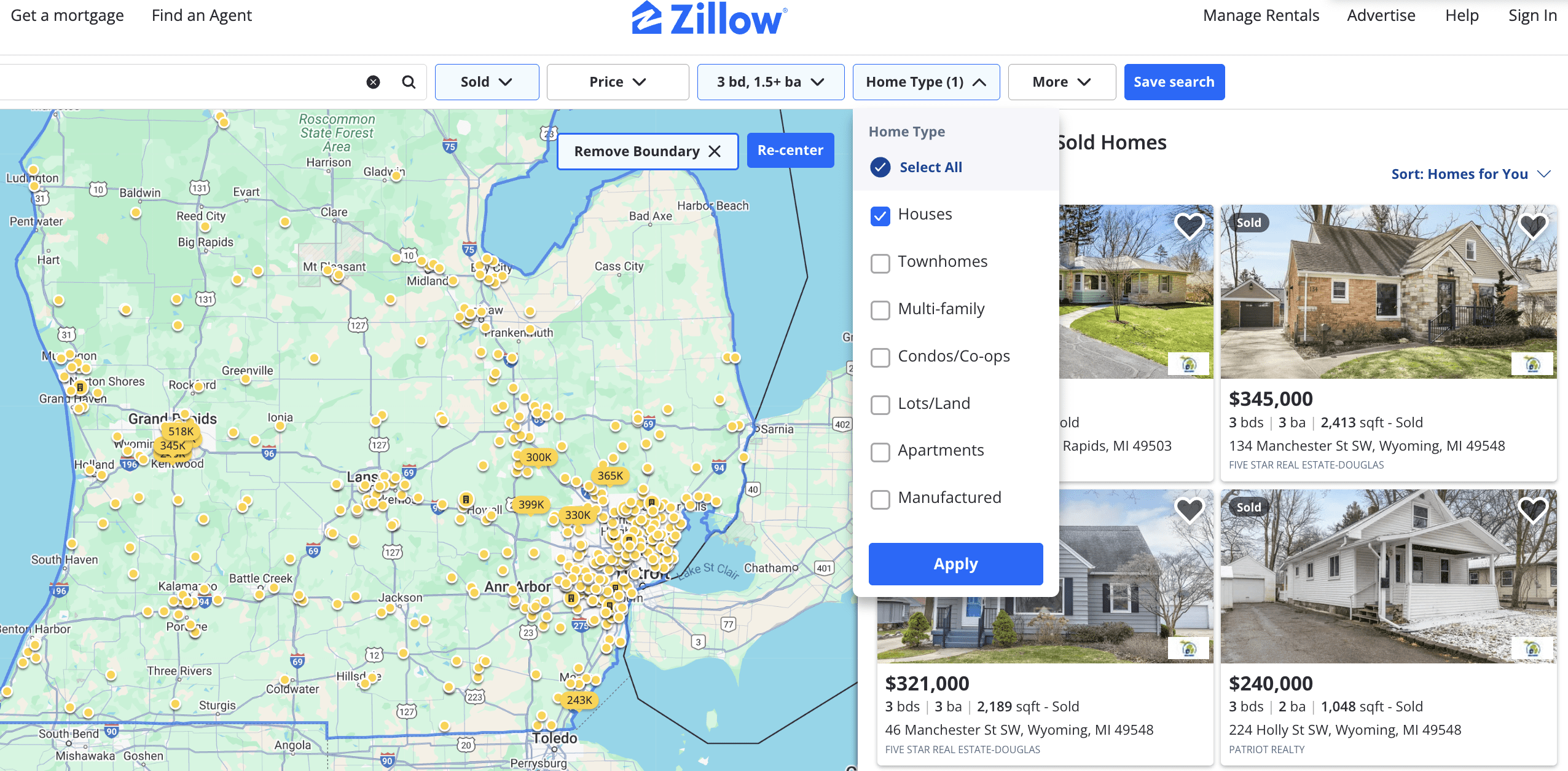 As an example, let’s take a look at how to filter your search for comps on Zillow.