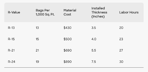 Along with the insulation, you’ll need to rent the blower, which ranges from around $90 for four hours to $125 for a full day. You may also be able to snag a free blower rental from the place where you purchase your insulation.