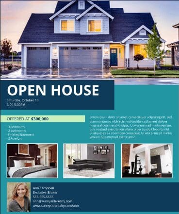 Once you’ve picked the right digital tool for your open house flyer, creating it should be a breeze. Don’t forget that at the end of the day, your flyer should highlight photos of your home, key features such as its location, and the time and date of the open house.