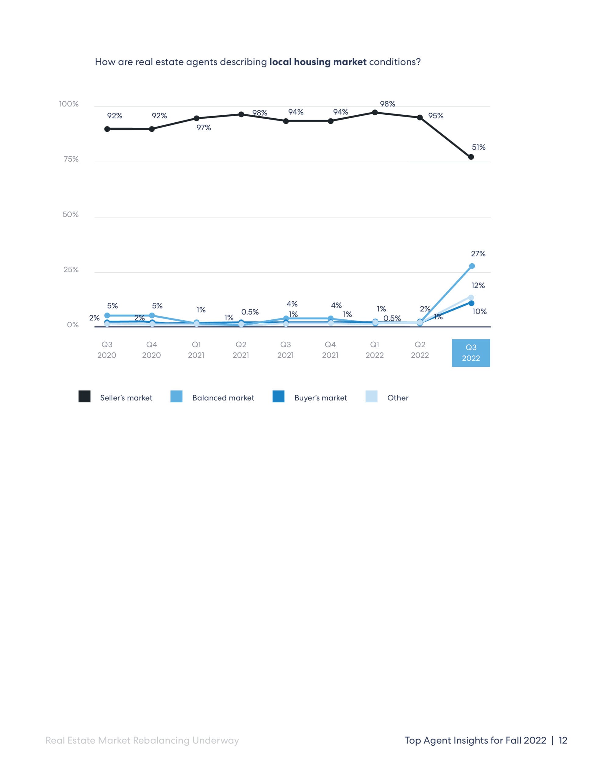 HomeLight’s Top Agent Insights report for Fall 2022 was fielded between July 25 and August 14, 2022 through an online poll of 1,005 top real estate agents across the country. Agents were selected to participate in the survey based on the same performance data HomeLight uses to identify top real estate agents for over a million homebuyers and sellers nationwide.