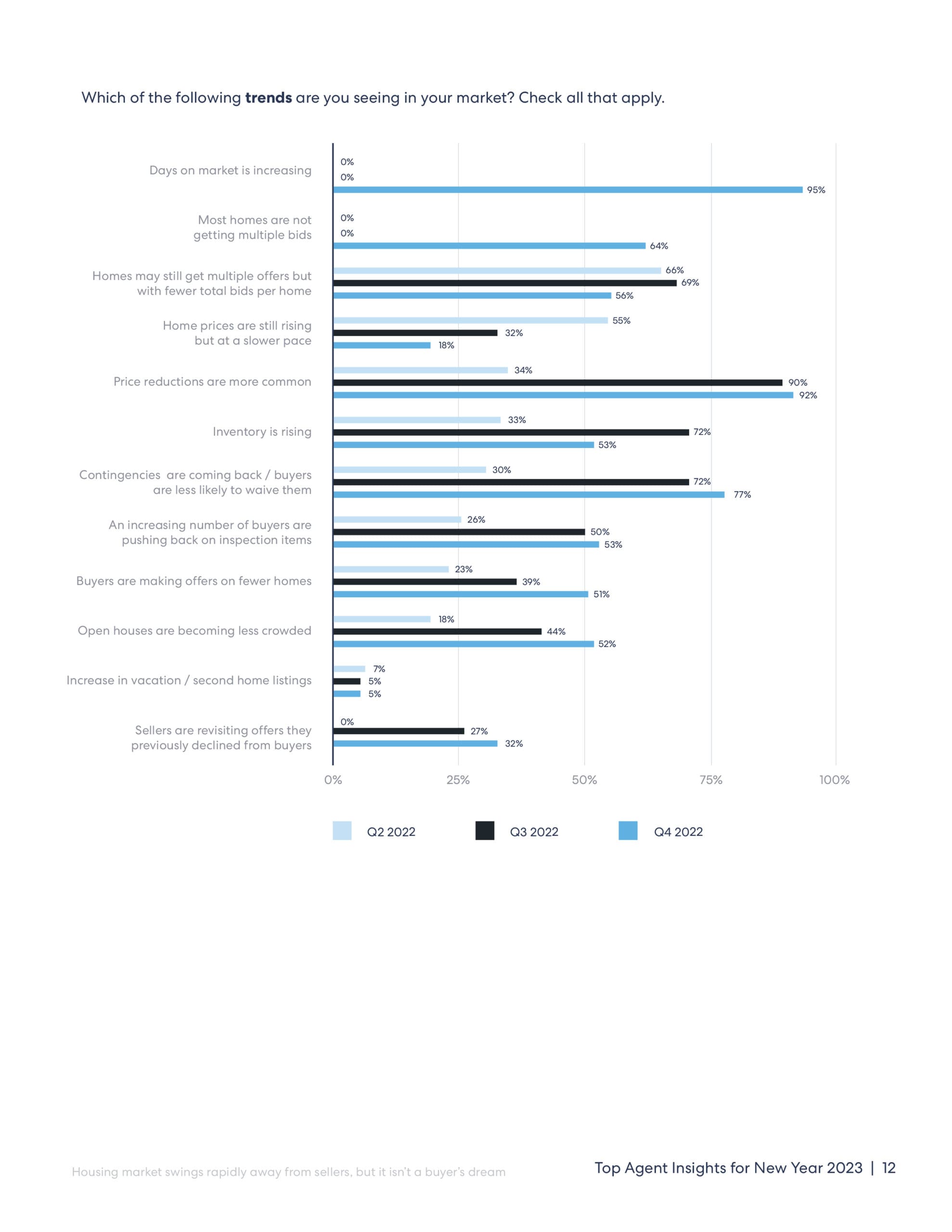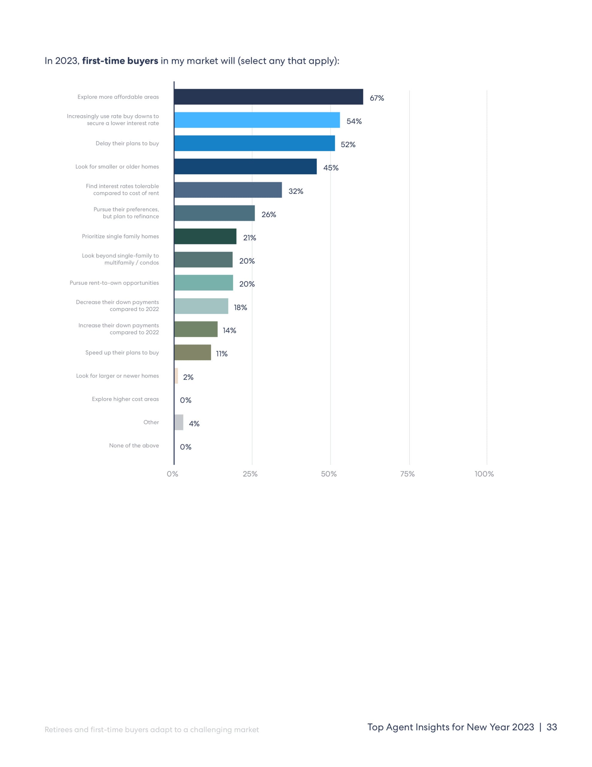 HomeLight’s Top Agent Insights report for New Year 2023 was fielded between October 29 through November 9, 2022 in an online poll of 1,031 top real estate agents across the country. Agents were selected to participate in the survey based on the same performance data HomeLight uses to identify top real estate agents for over a million homebuyers and sellers nationwide.