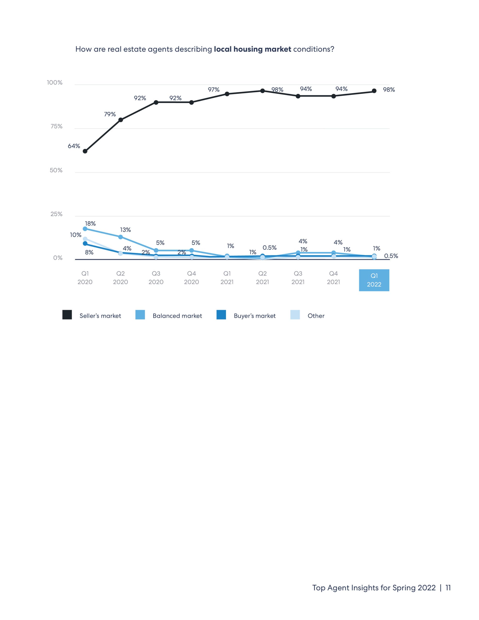 HomeLight’s Top Agent Insights report for Spring 2022 was fielded between Feb. 22-Mar. 6, 2022, through an online poll of 1,134 top real estate agents across the country. Agents were selected to participate in the survey based on the same performance data HomeLight uses to identify top real estate agents for over a million homebuyers and sellers nationwide.