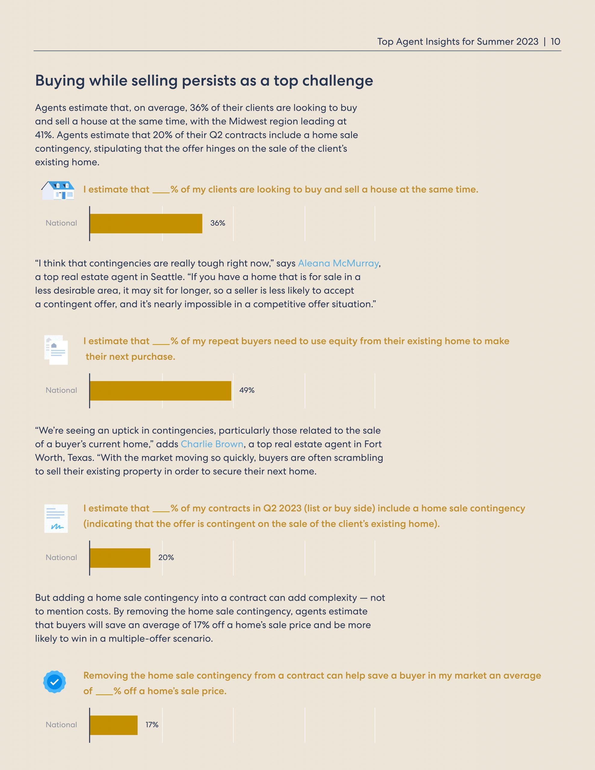 Get a sneak peek into some of the key data insights from our Summer 2023 report, including market trends, a rise in bidding wars and cash offers, and how heavily repeat buyers rely on the equity of their current home when purchasing a new one.