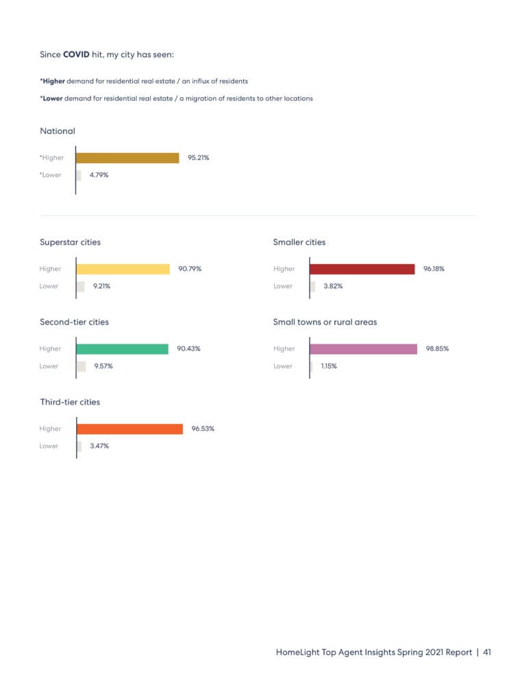 HomeLight’s Top Agent Insights report for the Spring of 2021 was fielded between Feb. 18-March 2, 2021, through an online poll of 1,378 real estate agents across the country. Agents were selected to participate in the survey based on the same performance data HomeLight uses to identify top real estate agents for hundreds of thousands of homebuyers and sellers nationwide.