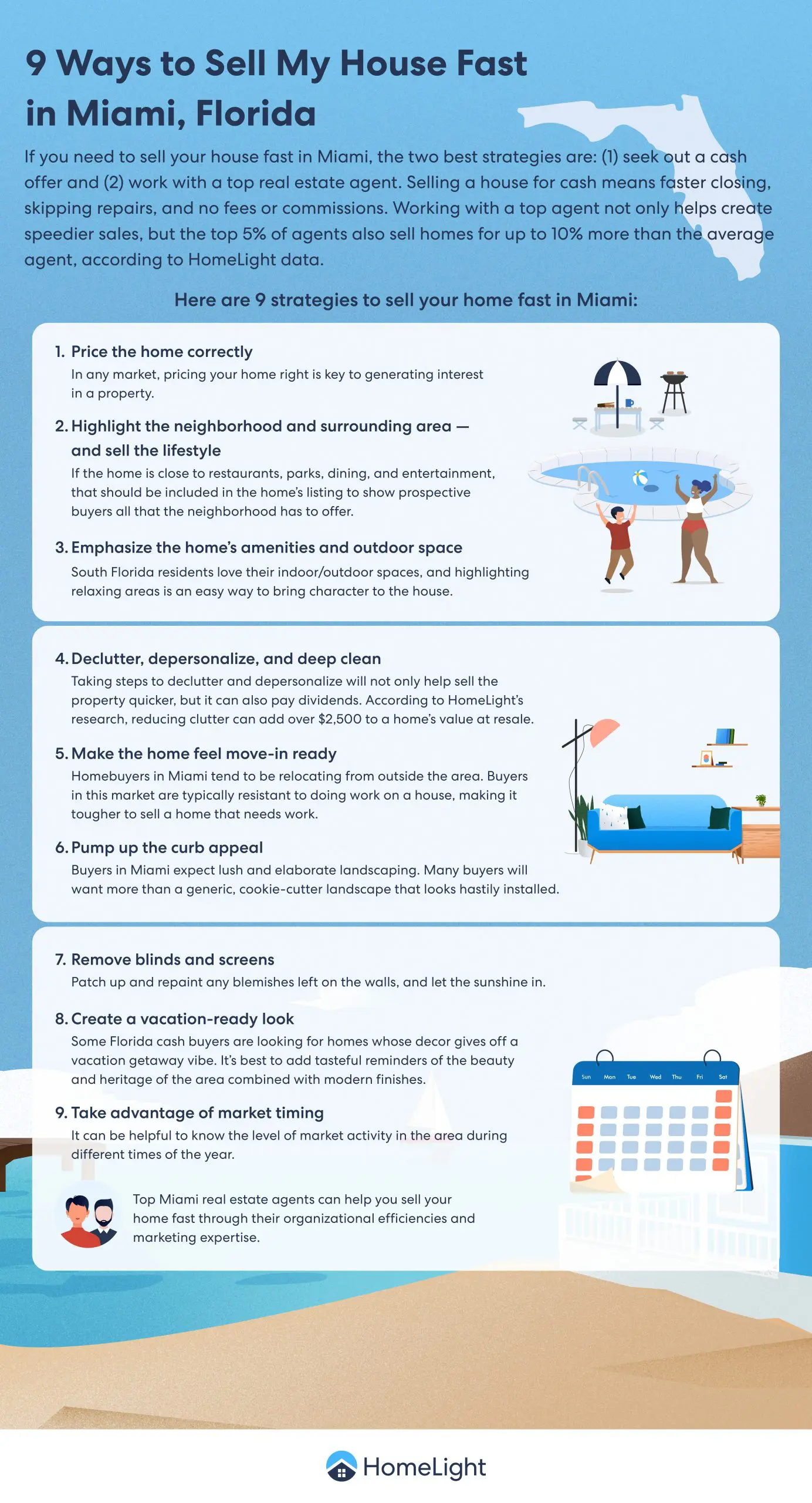 HomeLight can connect you with a top agent in Miami who you can trust to sell your home as quickly as possible. You can also use HomeLight’s Simple Sale platform to ensure that you sell your home fast.