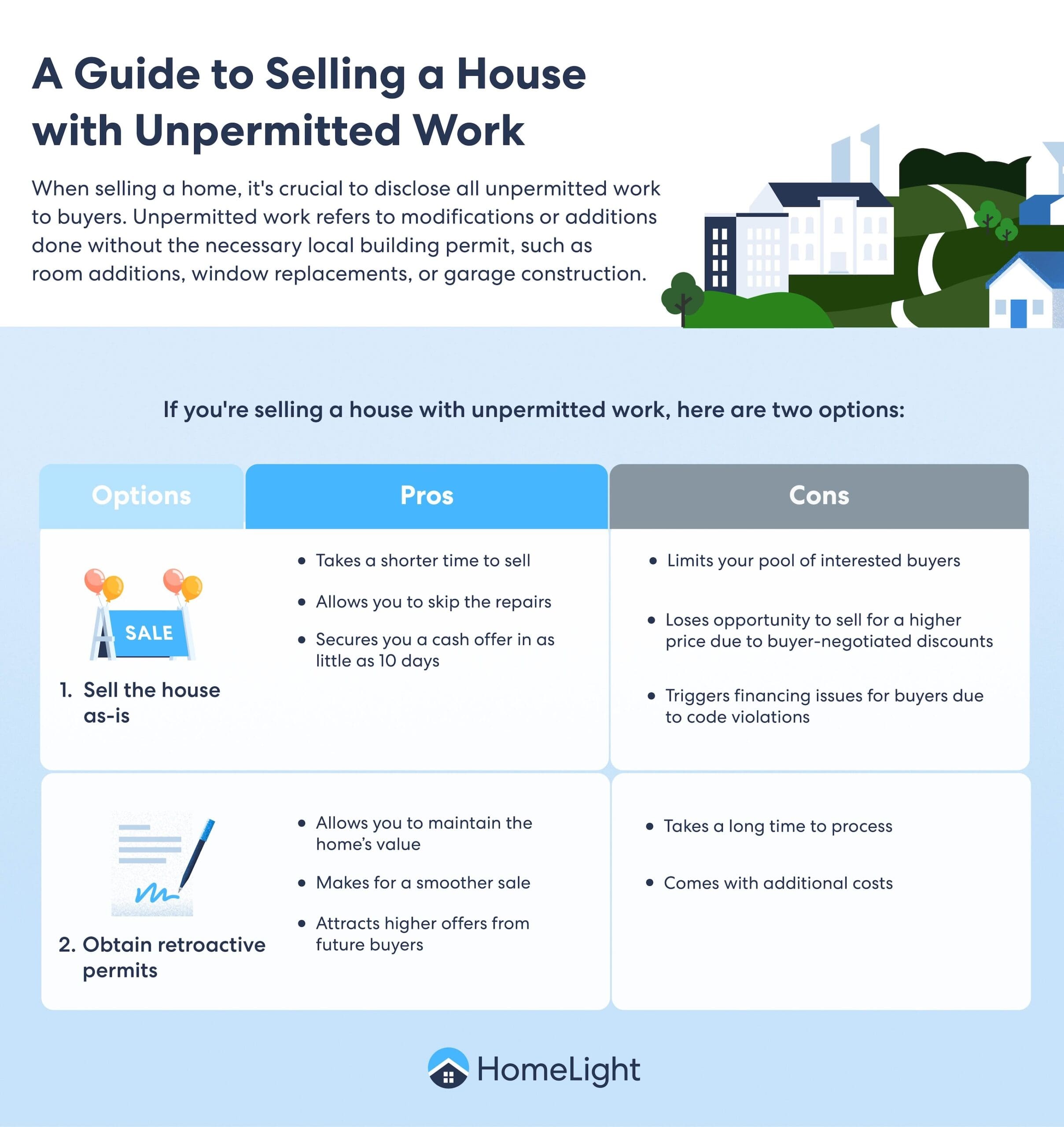 If there’s unpermitted work on your property, you’ve got three main options when it comes to the sale of your home.