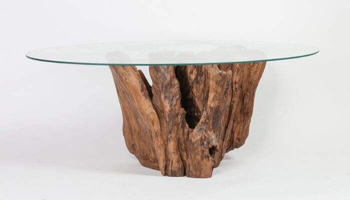 Soften boxy, geometric furniture with the organic lines of a driftwood coffee table.
