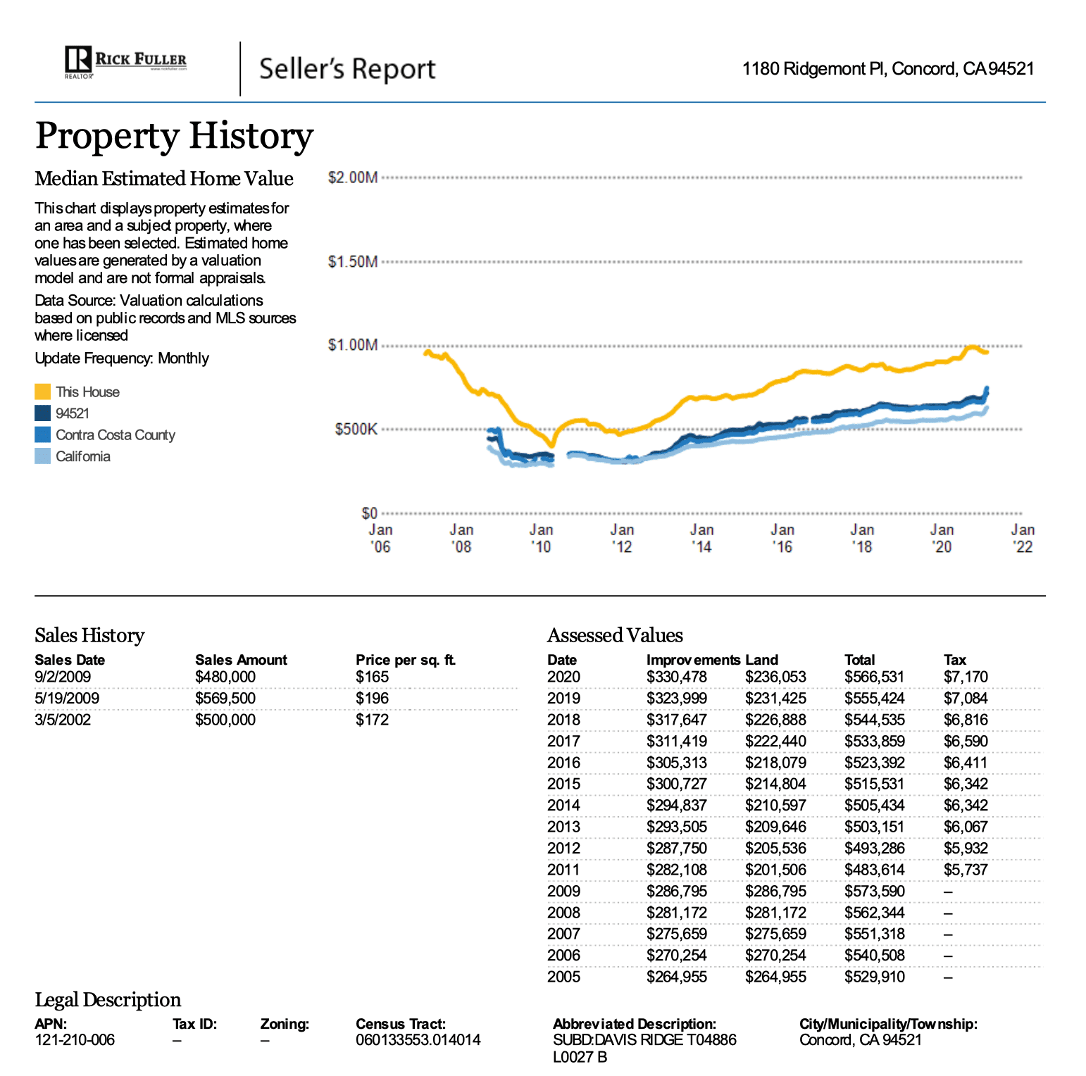 This page shows how the property’s estimated home value compares to the values of other homes in the same ZIP code, county, and state, based on public records and MLS sources. It also includes all of the home’s previous sales and its assessed values and taxes for each year.