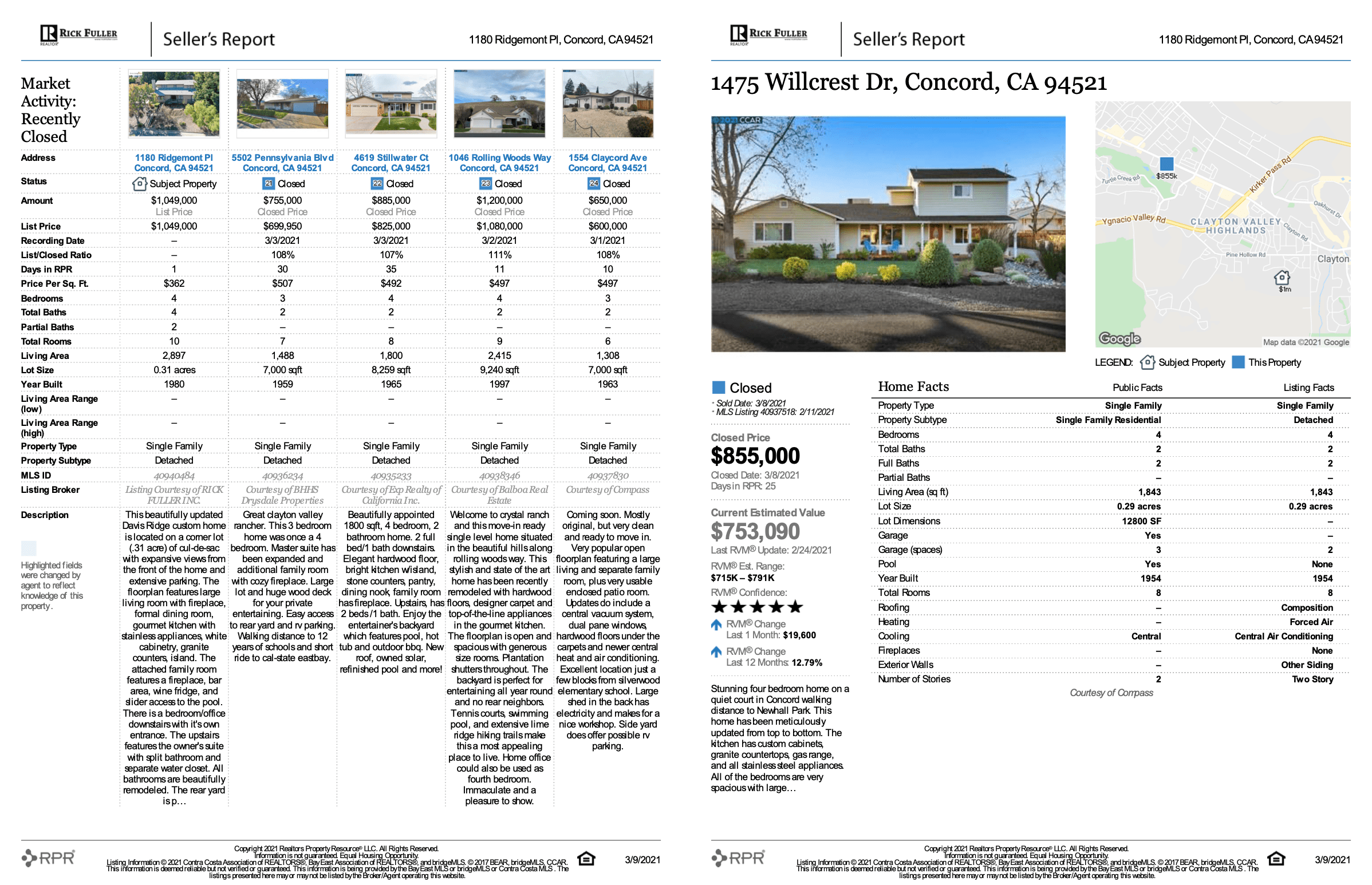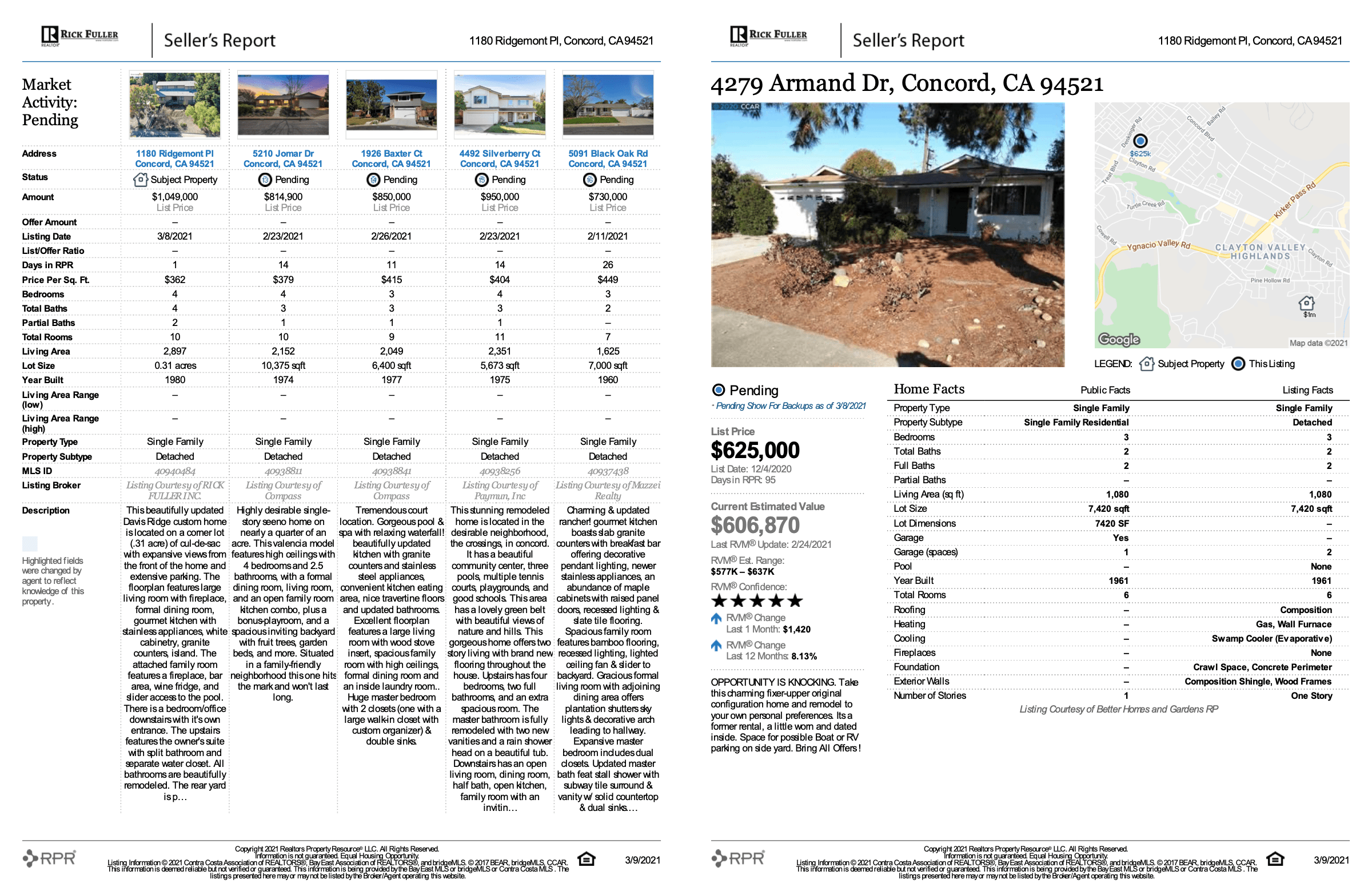 Rick Fuller, our top-performing Bay Area real estate agent, identifies a CMA as the single most important tool in assessing the market value of a property. A CMA usually comes in the form of a small booklet real estate agents prepare on behalf of their seller clients to set an appropriate list price.