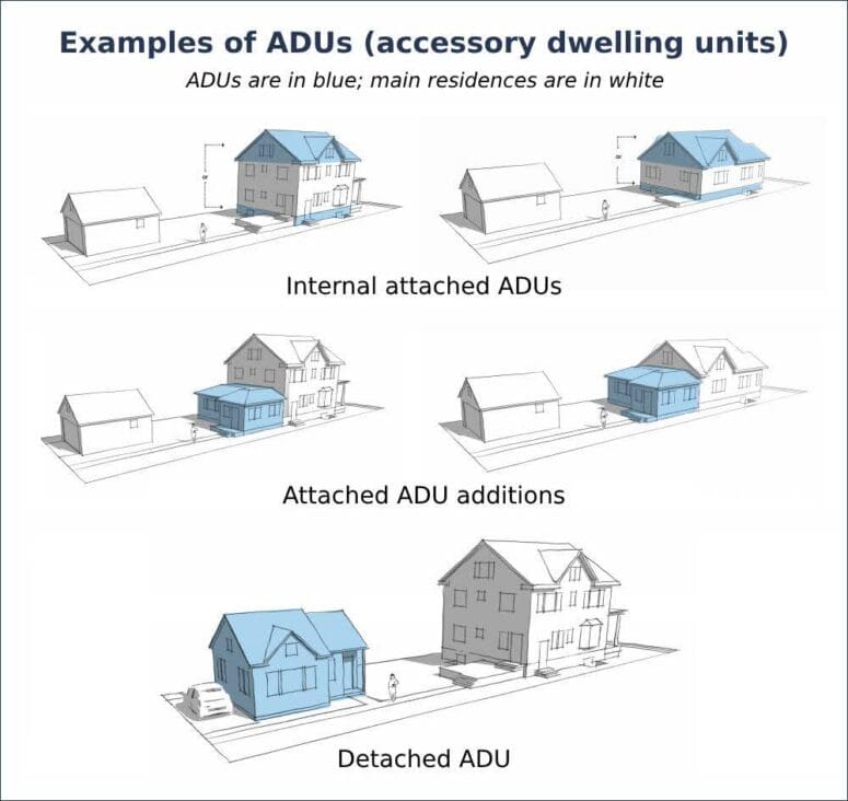 - Attached ADUs: An addition to the primary home with its own entrance.