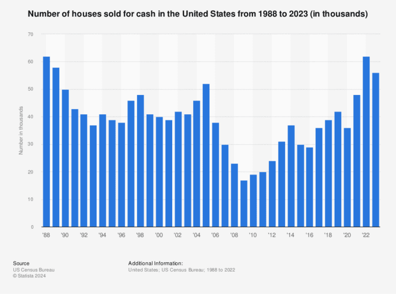 - "Number of houses sold for cash in the United States from 1988 to 2023", Statista (March 2024)