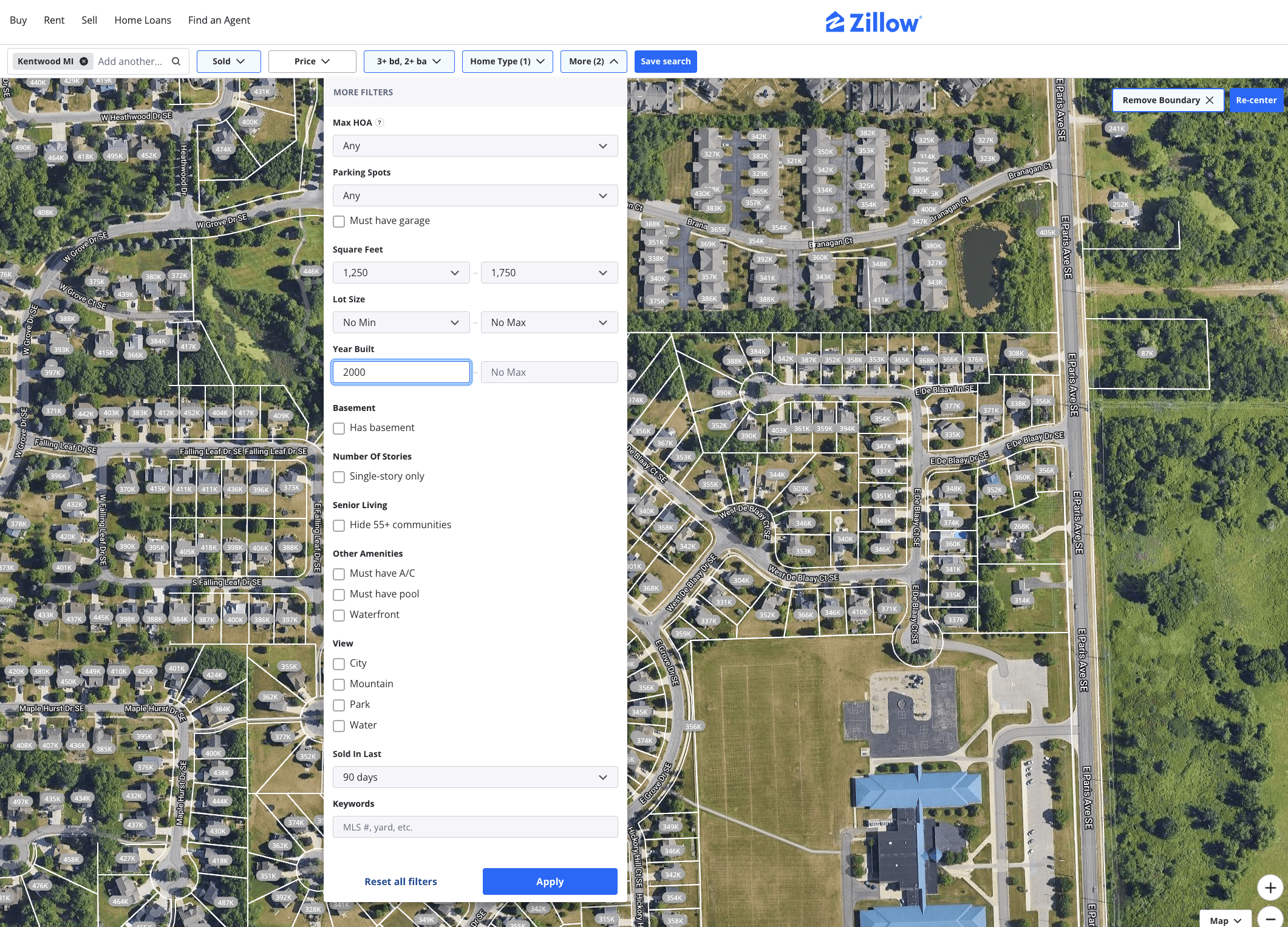 5. Now, go under “More” and select any similar features to your house. For example, enter your home’s square footage range, lot size, the year it was built as a minimum, and if your home has a garage, etc. At the bottom of this tab, click on the drop-down menu called “Sold In Last,” and select 90 days (or shorter) to get the most up-to-date sale prices.