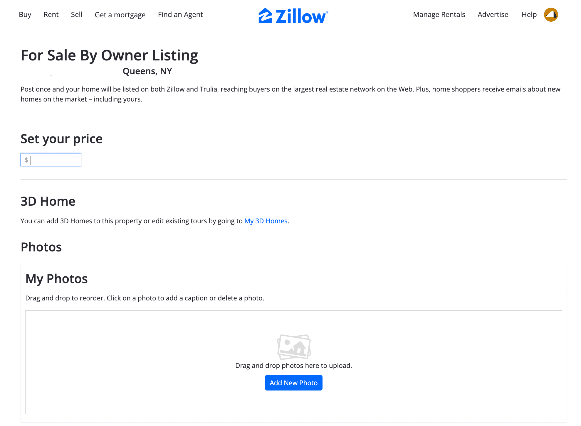 - List home for sale by owner: You can now post your home for sale by owner, which will include the following steps: